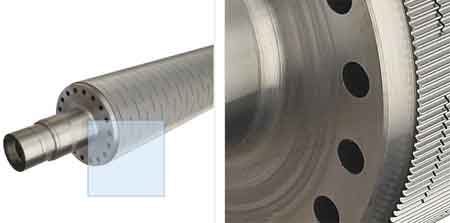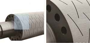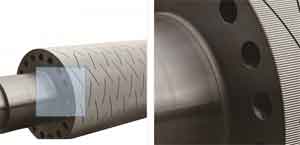 El rollo de ondular es uno de los componentes más importantes en la producción de cartón corrugado. El rodillo de ondular consta de dos partes: el rodillo superior y el rodillo inferior El rodillo ondulador inferior es el rodillo de accionamiento, que generalmente se fija mientras que la superior es el rodillo accionado. La condiciones de trabajo de los rollos de ondular requieren de alta dureza y alta resistencia al desgaste, donde está muy recomendado el recubrimiento con Carburo de Tungteno.